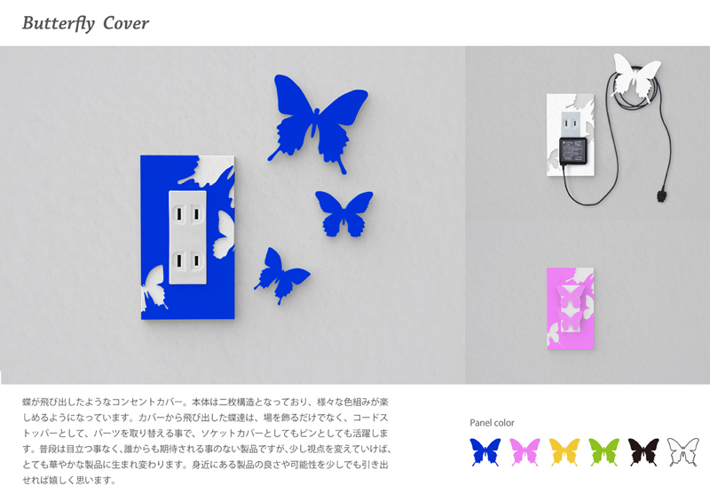 岩田賢二/愛知県江南市 製作環境:Rhinoceros、Shade、Illustrator、Photoshop/ハード:Windows XP ホームページ:http://kendesign.web.fc2.com/ ○蝶が飛び出したようなコンセントカバー。本体は2枚構造となっており、さまざまな色組みが楽しめるようになっています。 カバーから飛び出した蝶は、場を飾るだけでなく、コードストッパーとして、またパーツを取り替えることで、ソケットカバーやピンとしても活躍します。普段は目立つことのない製品ですが、少し視点を変えていけば、とても華やかな製品に生まれ変わります。 身近にある製品の良さや可能性を少しでも引き出せれば嬉しく思います。 |