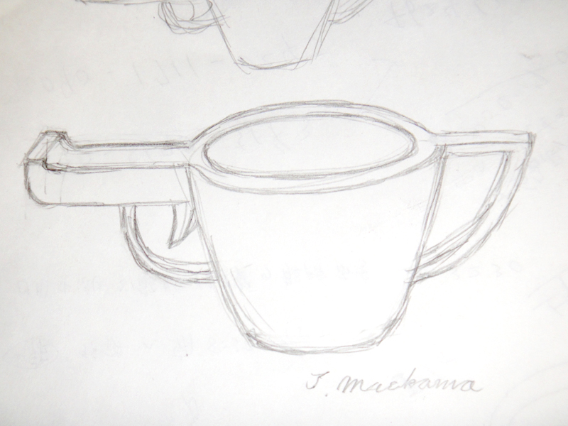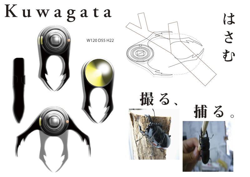 前川智裕/東京都品川区 使用ツール:手描きスケッチ ○平和な日本において普段、意識することのない銃(ピストル)をマグカップのモチーフにすることにより、手に取った人の問題提起へのきっかけになればいいと思い作成しました。銃は本来、人や動物を含め、生命を殺傷する道具です。善悪ではなく、そういう道具を生み出した人間の業というものをこのデザインを通じて考え、深い人間理解につながればいいと考えます。 |