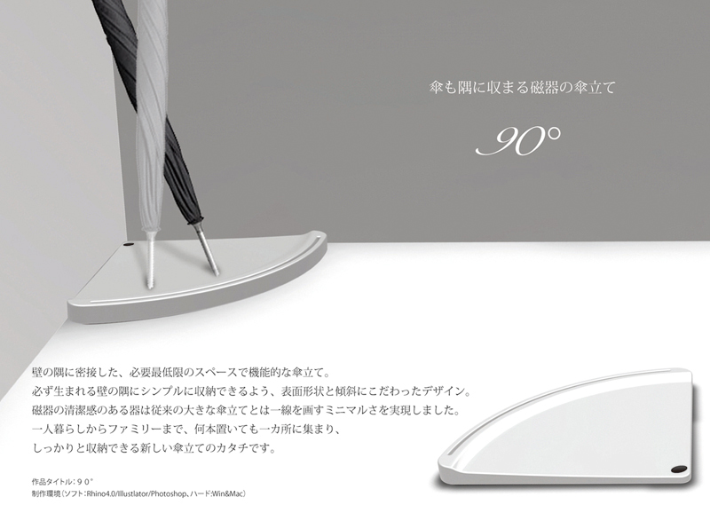 pdwebデザインコンペでは「デザイナーとモノ作りの現場をつなぐ」が副題となっている。つまりアイデアの斬新さだけでなく商品としての完成度や総合的な視点が必要になる難しいコンペであると思う。弊社では銅・錫鋳物によるプロダクトを手がけているが、素材の持つ性質を生かし、デザインとして結実しているかが商品化の際の大きな焦点となる。「90°」は機能性に加えて、滑らかな釉薬の上を水滴が走る美しさが想像されることも上位に入った理由であろう。「バケツ型のシュレッダー」はユーザー目線が愛着あるデザインに仕上がっていると感じて推した。