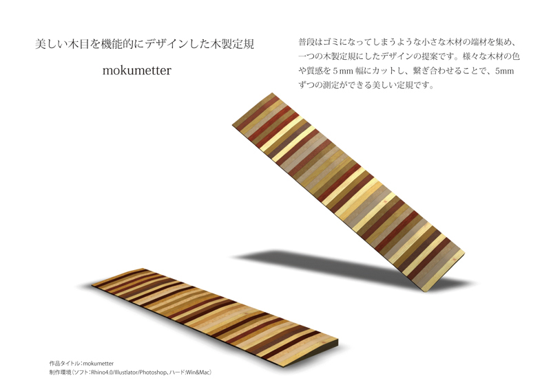 (1)カタチ(形状と色、素材)とアイデア(機能、独自性、エコ)・・・10点満点