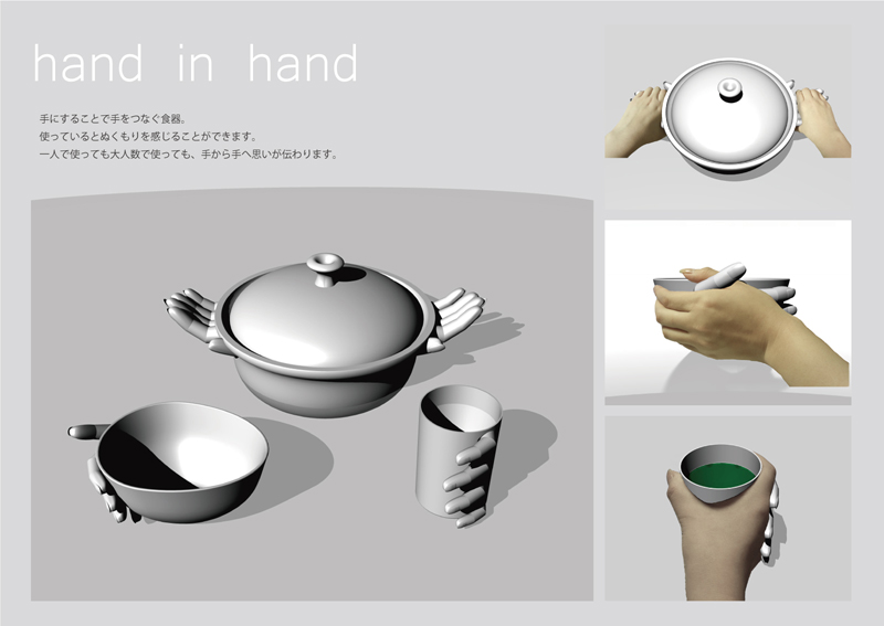 武輪紀織/大阪府阪南市 ○手にすることで手をつなぐ食器。使っているとぬくもりを感じることができます。1人で使っていても大人数で使っても、手から手へ思いが伝わります。 |