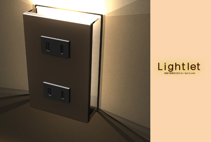 日高真希/大阪府大阪市 制作環境:Rhinoceros 4.0、Windows 8 ○夜中、暗い廊下を歩くときには足元の光が安心感を与えてくれます。その安心感を生み出す光の役割を日常で使うコンセントの中に埋め込みました。元々のコンセントの数を減らさず、雰囲気も壊さずに光を放つ、そんなコンセントを提案します。 |