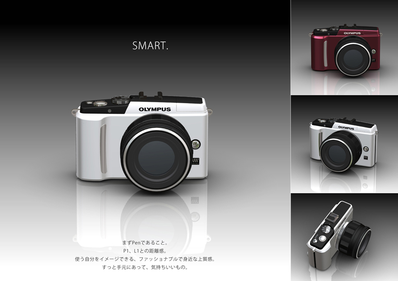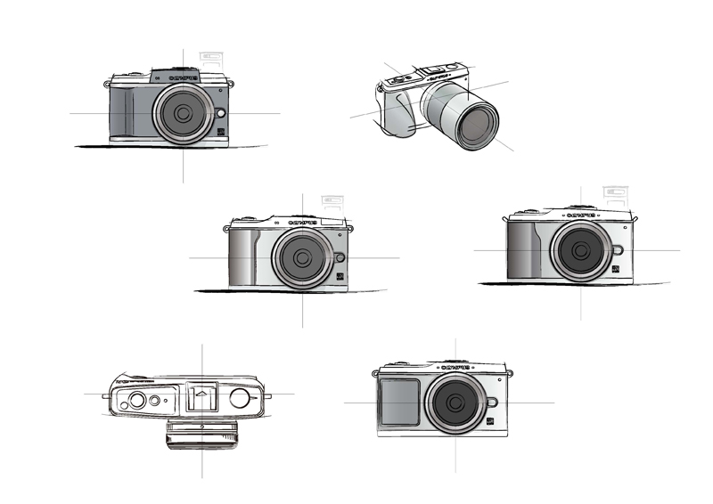 鯛中:そうですね。例えば最新のE-PL2は最初に手描きスケッチにデジタル加工を加えた簡単なイメージ画をたくさん用意しました。その中からいくつかピックアップして、3Dモデル化、立体モデリングというような工程に進みました。