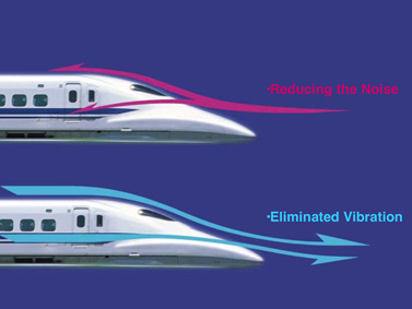 N700系のフォルムは、先頭車のときにノイズを減少させ、最後尾では動揺を抑える(クリックで拡大)