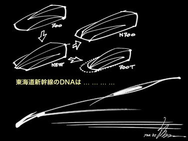 なぜ700系はこういうデザインになったのか。ただのファッションではなく理由がある。その理由を見つけたのがデザイナーだった。スピードと快適性への対応は、エンジニアからは台車や車輌間ダンパーなどで機械的に行う提案もありましたけど、それを私はカタチで実現しました。