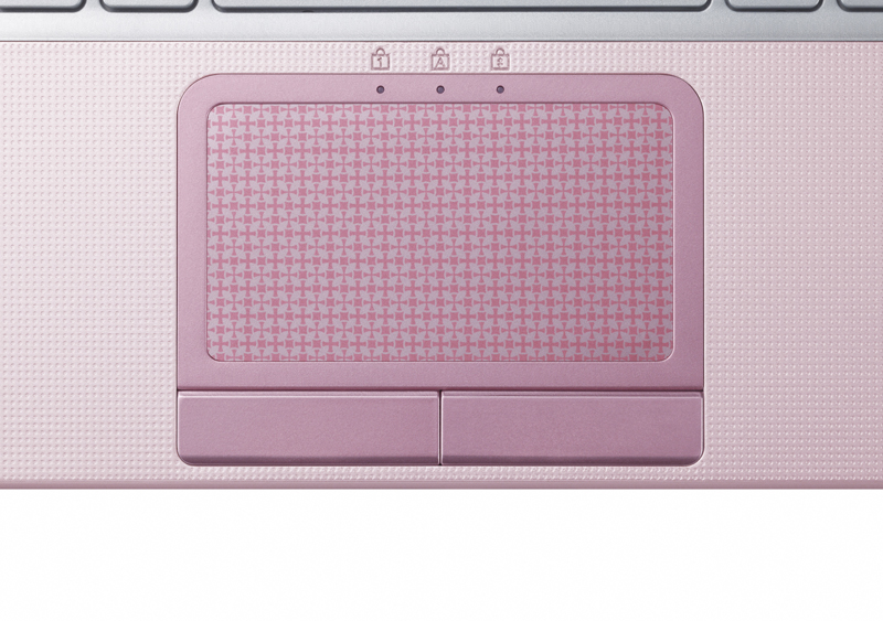 また、キーボードの周囲のパームレストにはディンプル加工を施してありますが、表面は高級チョコレートの包み紙のようにキラキラと輝きます。このディンプルパターンは単に装飾的な役割をしているのではなく、汗でべとつかないという機能的な役割を果たしているんです。外観は丸みを帯びていて、本体を手にした時に手にピタリとフィットするように作られています。