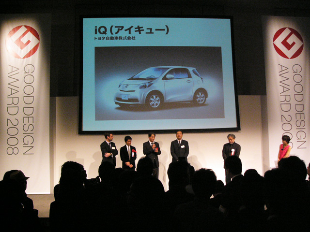iQは、全長2,985×全幅1,680×全高1,500ミリのボディに4人乗車可能なパッケージを実現。優れた環境・走行性能を両立するとともに高い安全性能も兼ね備え、サイズを感じさせない独自のデザインにより存在感と上質感を創出した。トヨタのグッドデザイン大賞受賞は、2003年度のプリウス以来2回目となる。