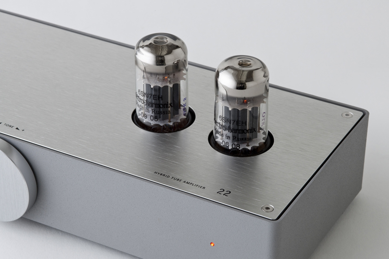 真空管方式のハイブリッドチューブアンプ「22」が第2期販売をスタートした。価格は73,500円(税込)。本機は従来のLINE INに加え、携帯音楽プレ−ヤーのヘッドホン出力に対応した専用の高感度・低インピーダンスの入力端子PHONE INを設けている。