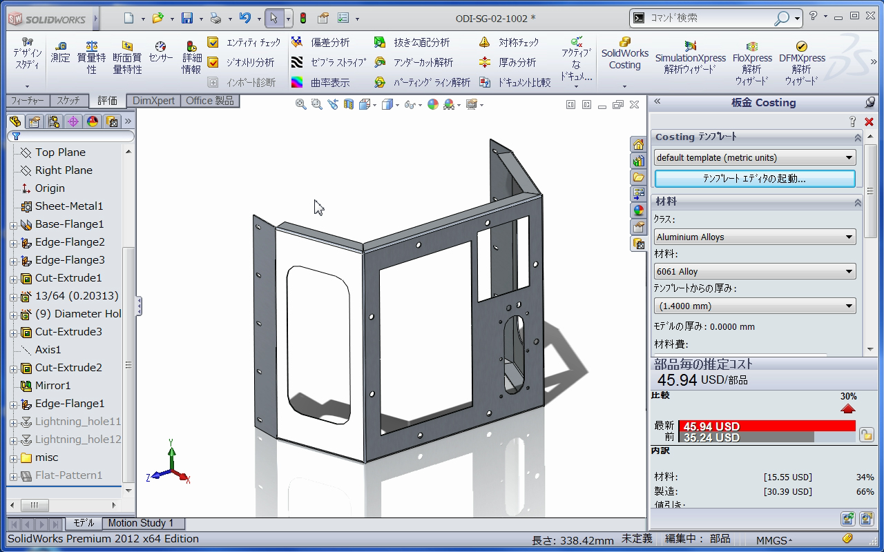 ・Costingツール:加工工程を自動的に解析し、リアルタイムに板金、機械加工などのコストを算出、コストの掛からない製品を効率的に設計することが可能だ(写真上)。