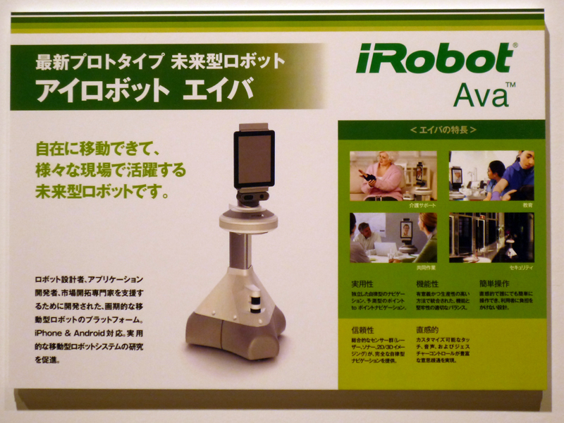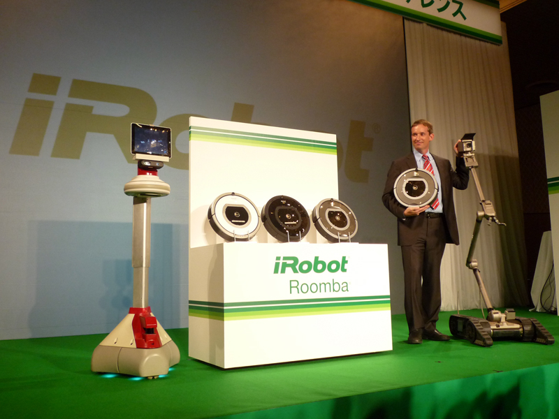 9月14日にロボット掃除機ルンバの新製品「ルンバ700シリーズ」を発表した米国のアイロボット。同社のCEO、コリン・アングルが緊急来日し、記者会見を行った(写真上)。新製品である700シリーズのプレゼンテーションをはじめ、日本では福島の原発事故処理で活躍した多目的作業用ロボット「PackBot」、家庭内で執事的役割が期待される未来型ロボット「Ava(エイバ)」の最新プロトタイプなどが紹介された。