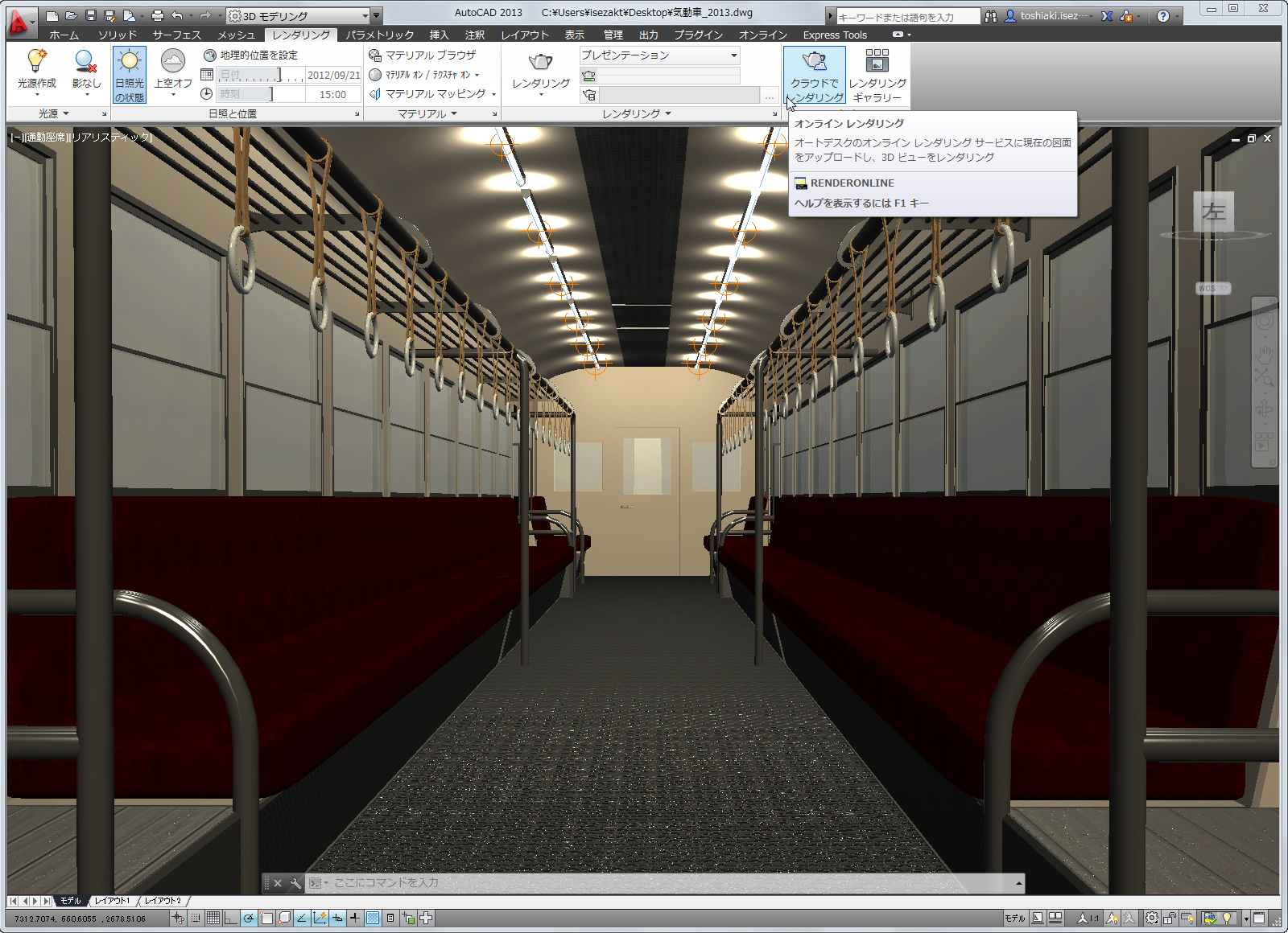 画像1:AutoCAD のモデルデータをクラウドのリソースを使ってダイレクトにレンダリングすることが可能。レンダリング中も自分のPCでは別の設計作業を続けることができる