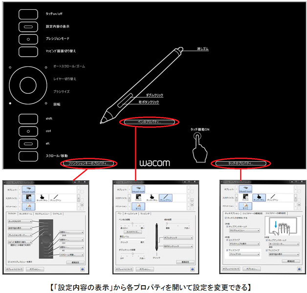また、今までプロフェッショナル向けに追求し続けてきたカスタマイズ性を継承し、頻繁に使用する修飾キーやキーボードのショートカットをワンタッチで実行できる「ファンクションキー」と「タッチホイール」をタブレットのワンサイドに搭載。ファンクションキーの設定は従来モデル同様にカスタマイズ可能で、アプリケーションごとに個別設定も可能。