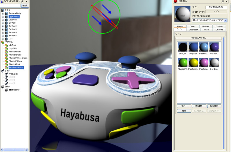 デモではゲームコントローラーのモデルの色やテクスチャをサクサクと変更していき、その利便性を表現。確かにRhinocerosの編集画面とレンダラー画面を同時に出しながら、瞬時にレンダリング画像が映し出されるその様は、2DグラフィックスやWebツールのプレビュー感覚であり、従来とは一線を画するデザインツールといえるだろう。
