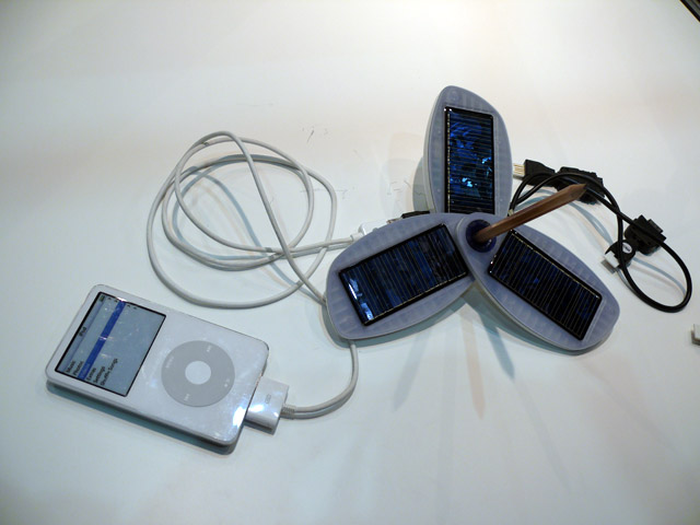 3枚の高性能太陽電池パネルを備えたポータブルソーラーバッテリー「ソリオ」。フォーカルポイントコンピュータ。(クリックで拡大)