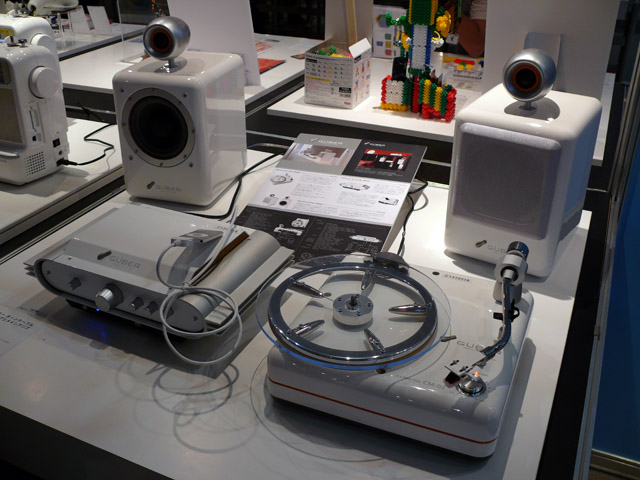 ベスタクスのオーディオシステム「グーバー ターンテーブルCM-02、スピーカーCM-03、プリメインアンプCM-04」。デザインは同社の平林孝介。(クリックで拡大))