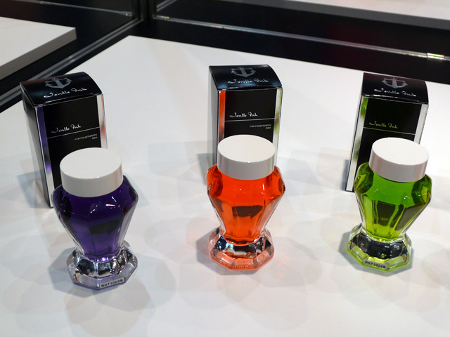 化粧品のような酒井硝子とセーラー万年筆による「セーラー万年筆インクびん」。(クリックで拡大)