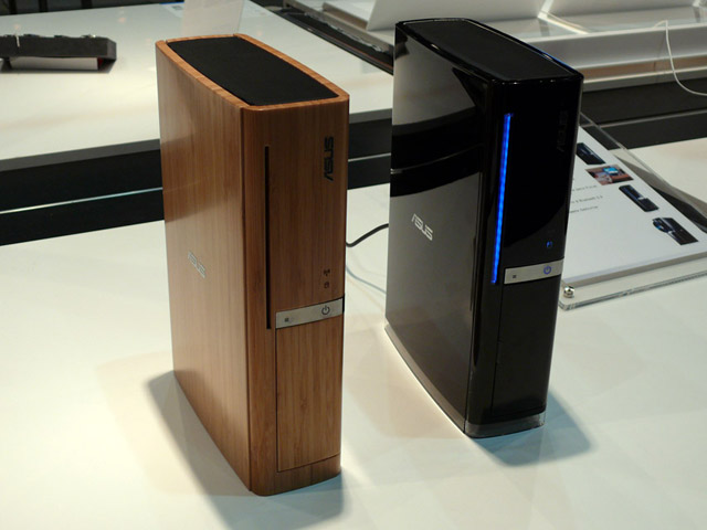 AsusTek Computer Inc.のUltra Small Form Factor Desktop PC「ASUS Essentio CS Series」。木目調と黒のメタリックの2タイプ。(クリックで拡大)