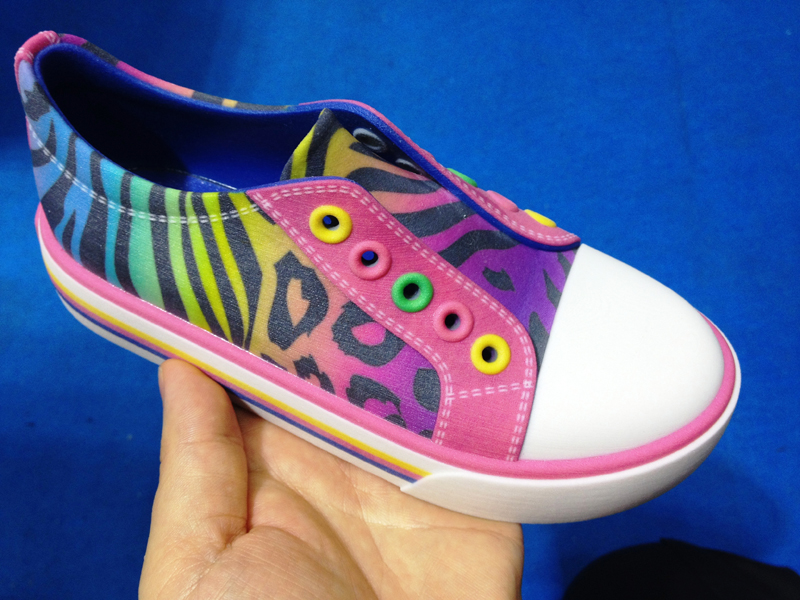「Z Printer 650」でカラー3D造形したスニーカーのサンプル。カラーの発色の良さをアピール(クリックで拡大))