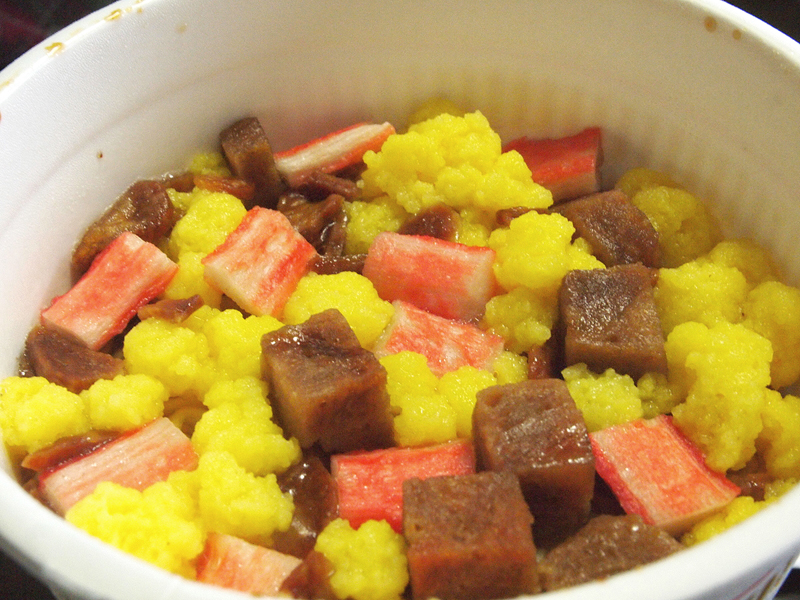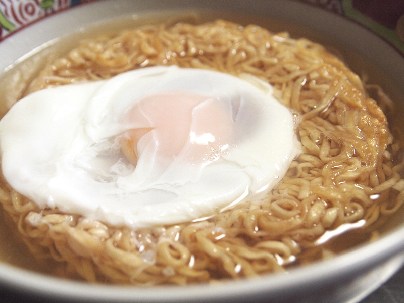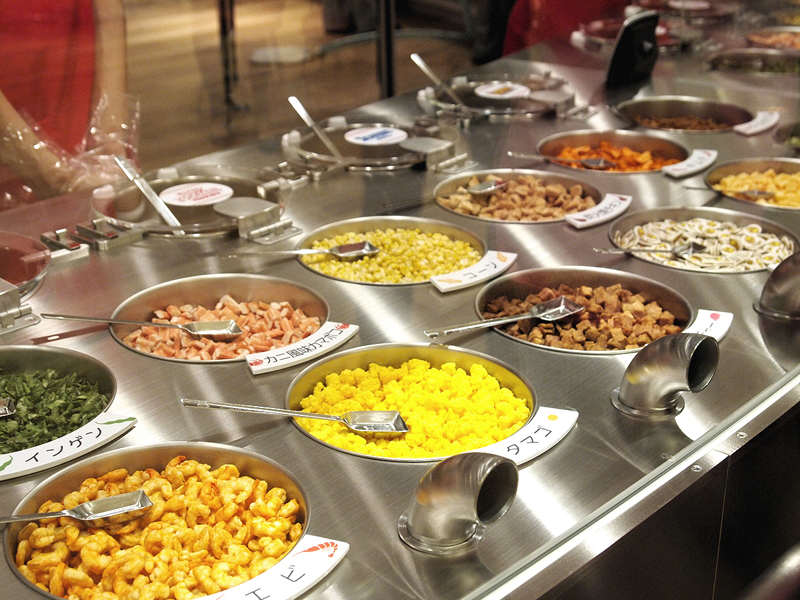 ●何かの代用品でない、新しいモノ 今も変わらないまま、人気も持続しているのは、多分、この製品が、何かの代わりではなく、「カップヌードル」という新しい何かで、競合他社は、その新しさだけは真似できなかったということなのだろう。だから、今回、カップヌードルミュージアムの展示で、実は最初の「カップヌードル」と同時に、「カップヌードル 天そば」(写真6)が発売されていたのを思い出して驚いたのだけど、そばは蕎麦として食べた記憶があるのだ。かなり美味かった記憶もあるし、事実、カップヌードル生誕40周年を記念して行われた「歴代カップヌードル復活総選挙」では、堂々1位を獲得し、2012年1月に復刻されることが決定しているのだけど、もう長いこと売られていなかったのは、それが「蕎麦」の代用だったからだろう(だから、その後、カップ麺が当たり前になった後で登場した「どん兵衛」シリーズに移行することになる)。 そう考えると、「カップヌードル カレー」(写真7、8)が人気なのもうなずける。あれも、他にはない、何かの代わりではない味だから(でも、パッケージはかなり変わっている)。 それは、もしかすると、カップ麺の技術が拙く、単にラーメンを作ることができなかったというだけなのかも知れない。現に、安藤百福の伝記物語の中では、カップヌードル開発の苦労話と出てくるのは、如何に麺をうまくカップの中に入れるか、という話であり、麺をカップに入れるのではなく、麺にカップを被せるのだ、という解決策が披露されるのだけど、ラーメンの味を再現する、といった話はどこにも出てこないのだ。さらに、元々の発案のヒントも、チキンラーメンをアメリカに売りに行って、「どんぶりと箸」が受け入れられなかったことだったそうで、その最初から「ラーメン」を作るつもりではなかったのかも知れないのだ。だから、その後の膨大な数(現在発売されていないものだけでも73種類)に及ぶ「カップヌードル」シリーズのすべてに、「ラーメン」の文字はない。そもそも、元祖の「カップヌードル」を醤油味だと思って食べているけれど、そんな表記はどこにもないのだ。多分あれは「カップヌードル味」というのが正解なのだろう。 ●カップヌードルミュージアムの仕掛け カップヌードルミュージアムには、オリジナルのカップヌードルを作ることができる「マイカップヌードルファクトリー」というアトラクション(写真9)がある。そこでは、カップヌードル味、シーフードヌードル味、カップヌードルカレー味、チリトマトヌードル味の4種類から味を選び、エビ、コロチャー、タマゴ、ネギ、ひよこちゃんナルト、ガーリックチップ、インゲン、チェダーチーズ、カニ風味カマボコ、コーン、キムチ、炭火焼きチキン(期間限定)の12種類の具材から4つを選んで(写真10)、オリジナルの味のカップヌードルを作ることができる。 筆者は、ここから、「カップヌードル」味に、コロチャー、タマゴ、ガーリックチップ、カニ風味カマボコを選んで、オリジナルのカップヌードルを作ってみた(写真11)。アトラクションとしては、カップに好きな絵が描けるというのも目玉の1つなのだけれど、それ以上に、この「味と具材を選ぶ」作業は、デザイン的な作業だと感じた。偉大なる「カップヌードル」への挑戦。