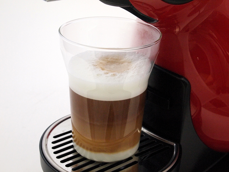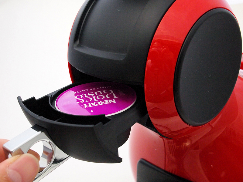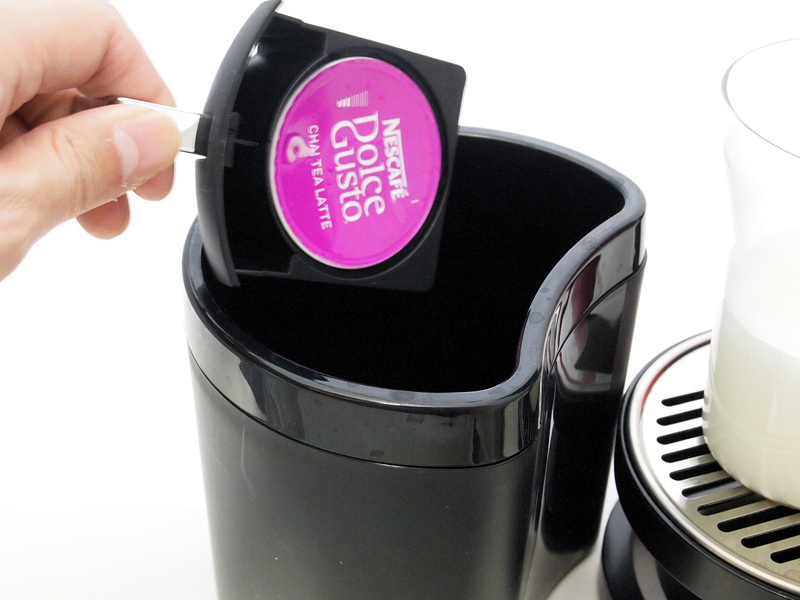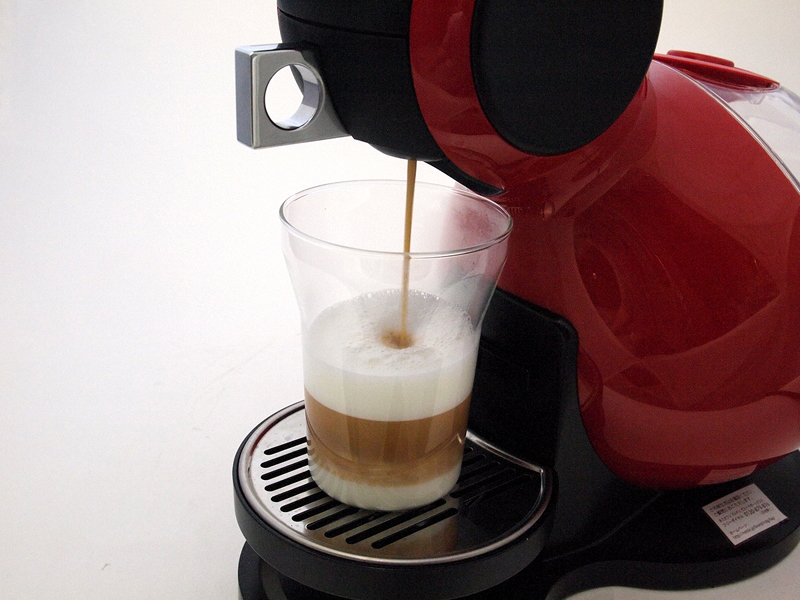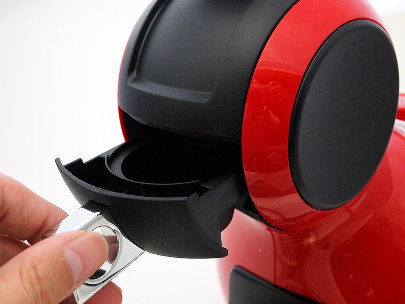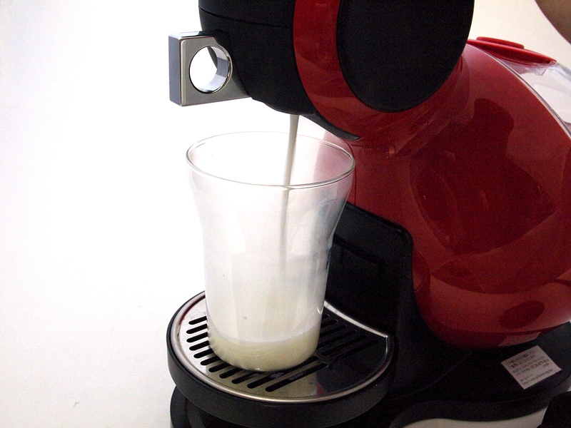 ●手軽さを極める ネスレ日本の「ネスカフェ ドルチェ グスト」を使っていて、感動と言っていいくらいありがたかったのは、その日々のメインテナンスの異常なほどの簡単さ。とにかく、洗い物が少ないのだ。1日使ったら、することといえば、タンクに残った水を捨てることと、カプセルを入れる小さな部品(写真02)を水洗いすることだけ。その部品も、洗いやすい形状だから洗うといっても10秒程度で終わる。きちんと豆を使うコーヒーメーカーよりも、この手の専用カプセルを入れればOK(写真03)のコーヒーメーカーが有利なのは、その淹れ方、片づけ方の簡単さに尽きるわけで、それがかなり極まったのが「ネスカフェ ドルチェ グスト」のシステムだと思う。それでいて、十分に美味しいのだから、使い始めると止まらない。確実にコーヒーを飲む頻度が上がるのだ。 実際に使ってみると分かるのだけど、カプセルを入れる部品部分も特に汚れることがなく、淹れた後の滴もほとんど垂れないから、実のところ、連続して淹れる場合、カプセルを直接ゴミ箱に入れてしまえば(使用済みカプセルを一時的に捨てておくための容器も付属している/写真04)、エスプレッソの次にカプチーノを淹れて、その後に宇治抹茶ラテを淹れる、といったことが流し台に行くことなくできてしまう。 操作も、電源を入れたら、カプセルを入れる部分を取り出してカプセルを挿入(写真05)、後はレバーを倒してコーヒーを抽出(写真06)。好きな分量まで淹れたら、レバーを戻して、カプセルをとり出すだけ(写真07)。時間にして30秒もかからない。インスタントコーヒーを淹れるより簡単に思えた。 カプチーノのように、ミルクを使う飲み物を作る場合は、先にミルクのカプセル(写真08)を使って抽出(写真09)、その後、コーヒーカプセルを使って、同じカップに注ぐ(写真10)。そのため、手間は二倍になるが、ミルクを温めて、泡立てて、カップに注ぐ手間を考えれば、やはり楽ちん。チャイティーラテ(写真11)やチョコチーノ(写真12)などの飲み物の場合、甘味もすでに入っていて、その加減が中々絶妙なので、撹拌するスプーンさえ必要ないのだ。この簡単さと、「ドルチェ グスト メロディ」のコンパクトさは、やはり、iPodが登場した時の「これは楽だ!」と思った感覚に似ている。「そんなもんで、ちゃんと聴けるの? 面倒なだけじゃない?」といった批判も、似たような感じだし。