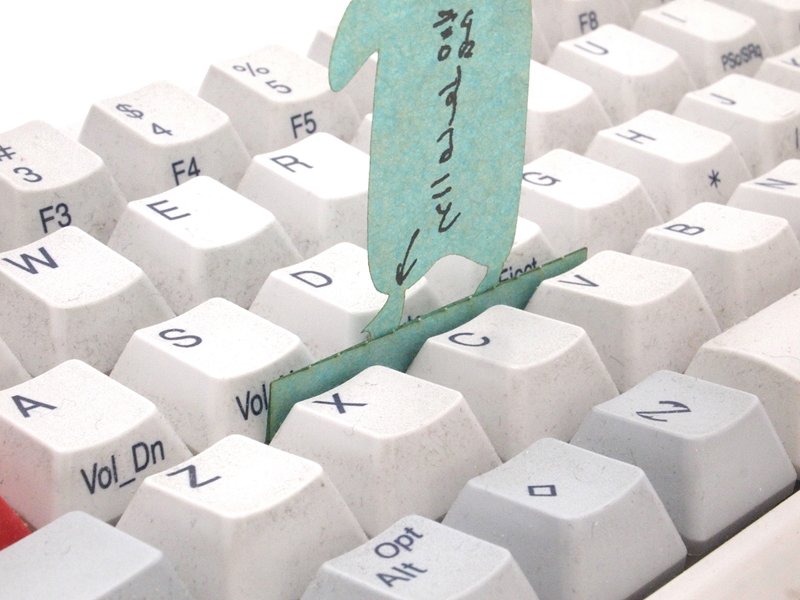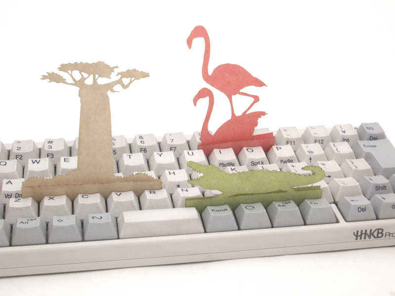 ●デジタルにはできない面白さ 電子書籍が頻繁に話題に上がるようになって、改めて思うのは、「本」というモノは、ハードウェアとソフトウェアが一体化した専用機だということ。当たり前なのだけど、紙はハードウェアなのだ。それは、「そろばん」がデジタル計算機であるという事実を、うっかりすると見逃していたような感じで、あまりにも当たり前にそこにあるために、かえって、その本質を忘れてしまうようなことなのだろう。だからデジタルの書籍が登場した時に、その電子書籍は、ソフトとハードの両方が必要だということがとても面倒くさく感じるのだろう。でも、音楽だって、映像だって、ハードウェアとソフトウェアが揃わないと、私たちは見ることも聞くこともできないのだ。 つまり、紙とかキャンバスといった、直接、そこに書いたり印刷したりしたものを見ることができるハードウェアというのは、これが中々珍しいもので、その性質上、どうしてもハードとソフトを揃える必要があるデジタルメディアに比べて、何だか、とても優位性があるような気がするのだ。ただ、最初に書いたように、紙はあくまでもハードウェアとしては専用機で、デジタル機器のような汎用性は低い。ただ、専用機としてはとんでもなく優秀だから、使い用によっては、デジタル機器では再現不可能なメディアを作り出すことも可能。 このところ、いくつかの紙製品を見ていると、そういった「デジタルにはできない面白さ」を、きちんと製品化したモノが増えているように感じるのだ。「良い紙だから書き心地が良い」とか、「目に優しくて、味わいがある」とか、そういった思い込みとか好み的な部分に訴えるのではなく、「だって紙は折り曲げられる」とか、「紙は工作できる」とか、「紙らしくないものが紙だったら面白い」とか、ようするにハードウェアとしての紙の特性や面白さに着目した製品が増えているし、人気になっていると思うのだ。 ●デジタル時代だからこそ便利な紙製伝言メモ「deng-on」 例えば、ハイモジモジの「deng-on」シリーズ(写真1)。これ、実はただの伝言メモなのだけど、この「伝言メモ」という機能は、まだまだアナログ製品というか、紙の方が使いやすい機能の1つ。わが家でも、「昼ご飯は冷蔵庫のパンケーキを食べて」みたいな奥さんからの伝言は、メモ帳に書かれて机の上に置かれている。会社などでも、「××さんから電話がありました」的なメモは、紙に書いて置くのが楽で速くて確実だ。これをメールとか、モニタ上の伝言板ソフトで行うのも可能だけれど、それはまだ「わざわざ」感が強い。つまり、元々紙の方がアドバンテージのある「伝言メモ」を、さらに「紙らしく」バージョンアップした製品なのだ。 まず、キーボードのキーとキーの隙間に差し込む伝言メモ(写真2)、というアイデアが秀逸。最近では薄いキーボードが増えているという現実もあるにはあるけれど、キーをたくさん打つ職場では、やはりある程度キーをしっかり打てるタイプのキーボードを使っている人がまだまだ多い。というか、例えば書き心地でペンを選ぶように、今後、打ち心地でキーボードを選ぶ時代になれば、ある程度キーストロークが深いキーボードは当たり前に主流になるはずで、その意味でも「deng-on」は未来を先取りした文具と言えると思うのだ。そして、キーボードに立っていると、それを読んで、キーボードから取り外さないと仕事ができない。つまりメモを読んでもらえる可能性も高いし、自分用の備忘録としても有効だ。 さらに良くできているのは、それらのメモのデザインを、キーボード上に立てた時に、何となくモニタを背にした影絵のようなイメージにしたこと。主に動物をデザインしたメモ類は、キーボード上ではなく、キーボードを前景にした仕事環境全体を舞台にして、そこにメモによる風景を作り出せるようにしたスタイルは、紙を二次元として扱いながらも、空間の中に配置できるという、紙のハードウェア性を活かした製品を作っているということだ。メモできる場所の確保を忘れず、差し込めば立つという制約の範囲内で、動物にかなり思いきったポーズを取らせるスタイルも攻めている。そして、紙だから、何となくそよぐのも環境として悪くない。 何より「deng-on」が上手いのは、キーボードに差し込む部分は折り曲げて挿す仕様にすることで、電話番号やメールアドレスといった、あまり周囲の目に直接触れさせたくないメモを隠せること(写真3、4)。しっかり自立させるためと、メモの機密保持の一石二鳥のアイデアに加えて、折り線が軽くミシン目になっていて、考えなくてもキレイに真ん中から折れるようになっているのも上手い。機能は、こういう所に用意されていると、製品全体の性能がぐっと上がるのだ。また、こういう細部の目配りが、デジタルではできないアナログならではの良さなのだから、紙の良さをアピールするなら、こうい