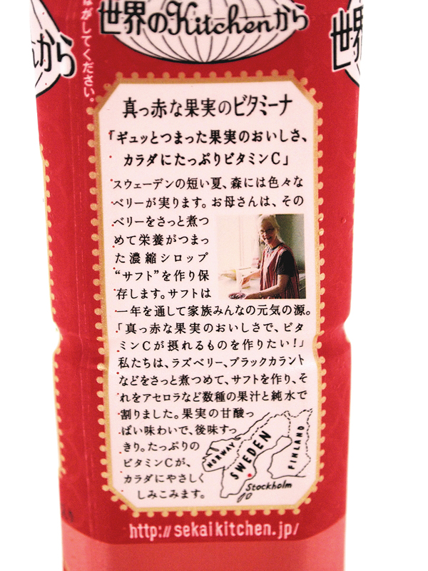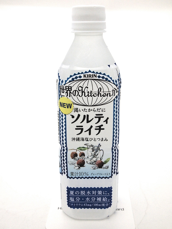 ●濃密系ドリンク キリンビバレッジの「世界のkitchenから」シリーズが上手いのは、それが「世界のDrinkから」ではないところだろう。第3弾くらいに発売された「とろとろ桃のフルーニュ」は、ハンガリーの季節の果物を煮込んで、そこに乳製品を加えて作るフルーツスープにヒントを得て、煮込んだ白桃と牛乳を中心にした飲み物だった。これが、製法上多くは作れないから数量限定で、という広告と共に売り出されて、確かに、あまりペットボトル飲料では飲んだことがないレベルの濃密さだった。この「濃厚」ではなくて、何だか、やけに手が入ってる感じと、味が隅々まで行き渡っている感じの、飲み物としての複雑さから来る「濃密」感は、量産品っぽさの少なさと呼んでもいいのかも知れない。 その意味では、スペインのいろいろな果物を切って混ぜて、酒や果汁の中で上手さを引きだす「マセドニア」にヒントを得た「赤ワインで煮こんだマセドニアグレープ」も、とても「濃密」な美味しさで、アルコールは入っていないのに、ワインを使ったカクテルを飲んでいるような充実感があった。デンマークのりんごのお粥「エーブルグロッド」にヒントを得た「やさしい煮りんごのアップルモーア」も、「濃密」感のある飲み物だった。ただ、こうして振り返ってみると、いわゆる「濃密」系のメニューは、実はそれほど多くないことが分かる。しかも、これらはどれも、販売期間が短かった。売れなかったのか、採算が取りにくいのか、詳しいことは分からないけれど、何となく、大量生産しにくい製品のような気がした。 ●各国の名品と一手間かけてコラボ もう一方の流れとして、それこそ今も売れ続けている、「世界のkitchenから」シリーズの大ベストセラー「ソルティライチ」に代表される、世界の料理と従来からある飲料を併せたような製品も、「世界のkitchenから」のスタイルの1つ。これは、第1弾(だったと思う)の「ピール漬けハチミツレモン」や、第2弾の「ディアボロジンジャー」がすでにその流れであり、むしろ、「世界のkitchenから」の主流はこちらなのだと思われる。その中から、時々、突出して現れるのが「濃密」系の製品なのだろう。 例えば「ピール漬けハチミツレモン」の場合、南イタリアのレモンピールを漬け込んで作る酒「リモンチェッロ」から、「レモンピールは美味い」というヒントを得て、イタリアのノーワックスのレモンピールをハチミツに漬け込んだ「ハチミツレモン」が作られた。同じように、プロヴァンスでの果物や野菜を砂糖で煮詰めて保存する手法を、ジンジャーエールの生姜で試してみたのが「ディアブロジンジャー」。どちらも、手法と飲み物がそれぞれにあって、合せ技で作られているため、基本的にはすでにあった飲み物のバリエーションに留まる。 ただし、そのバリエーションの方向が、ちょっと手間をかけるという方向なので、従来のジンジャーエールやハチミツレモンに比べ、高級感が感じられるし、特別感もある。それが上手い方向に働いたのが、「ソルティライチ」なのだと思う。最初に出た時は「ソルティライム」だったのが、リニューアルを重ねて現在は「ソルティライチ」だが、どちらにせよ、多分、製品コンセプトは「美味しいスポーツドリンク」なのだと思う。「世界のkitchenから」のサイトでは、どちらの製品のページにも「水分と塩分を美味しく摂ってほしい」といったことが書かれていることからも、それは窺える。 メキシコで作られる、塩とライムの組み合わせを基本にしたさまざまな料理、タイで作られる果物と塩と氷のデザート「ローイゲーオ」、それぞれをヒントにした、という設定の上で、作られているのは、ライチやライムといった塩と相性が良い果汁と塩を使った、水分補給飲料。個人的には味の締まりが強かった「ソルティライム」の方が好みだったし、「ソルティライチ」も初期の、砂糖の粒が少しザラッと感じられる方が好きだったけれど、完成度は、現状のバージョンの方が高いのも間違いない。ポイントは、機能系飲料だって、美味い方が嬉しいし、美味さに何らかの分かりやすい理由が付いていた方が嬉しい、ということだ。 スウェーデンのベリーのシロップ「サフト」にヒントを得た、「真っ赤な果実のビタミーナ」も、実は、要するにアセロラドリンクのバリエーションなのだけど、「サフト」というシロップの存在や、アセロラだけでなく中心にベリーを持ってきたこと、グレープフルーツで味を整えていること、果汁は10%に押さえて、水分補給飲料的な役割と、濃厚過ぎない飲みやすさに仕上げたこと、などが、単なるビタミン補給の機能系飲料ではない、「美味しい」飲料としての製品を作り上げているわけだ。 機能系ではない形で夏の飲料を提唱して成功したのが、キューバのカクテル「モヒート」をソフトドリンク化した「水出しミントジュレップソーダ」。これは美味かった。モヒートの過激