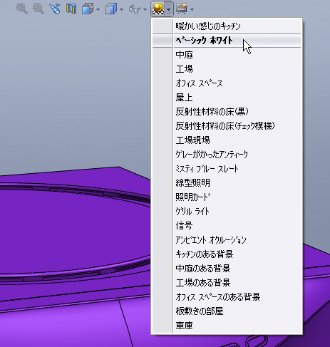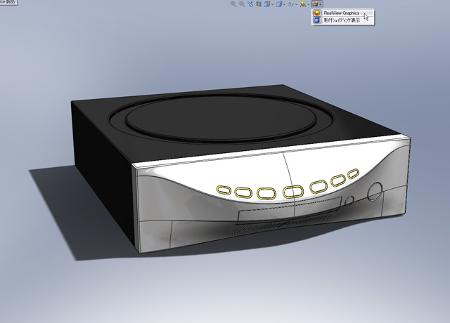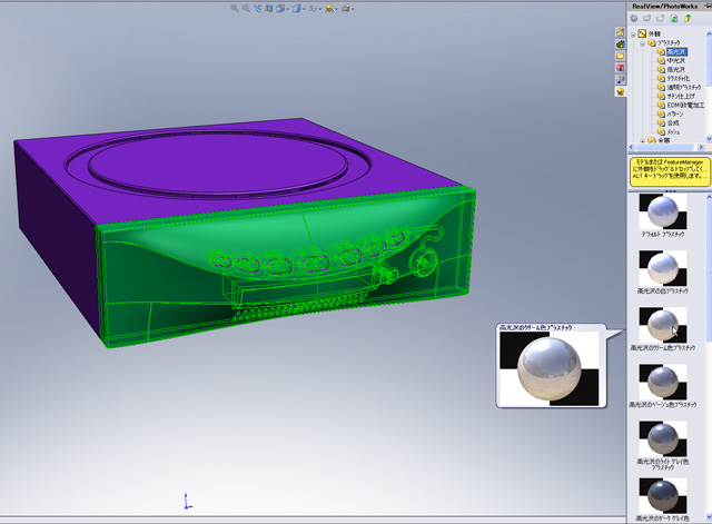 SolidWorks2008からRealViewでPhotoWorksの外観を表示できるので、レンダリング時の雰囲気がつかめる(クリックで拡大)