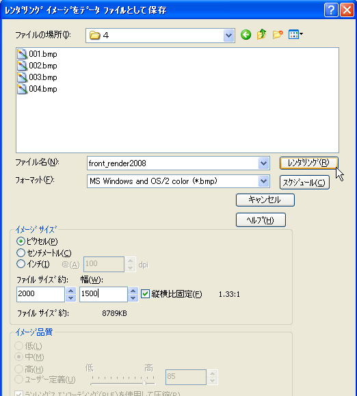 「レンダリングイメージをデータファイルに保存」ボタンを押せば、解像度の指定もできる(クリックで拡大)