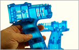 高解像度DLPプロジェクタを使用することで超高精細造形を実現。射出成型品に匹敵するほどの高精度で造形が可能です。耐熱140度の高耐熱樹脂をはじめ、様々な特性を持つ樹脂を使用できるので、最終製品により近いかたちでの試作を実現します。高いレベルでの試作に最適です。