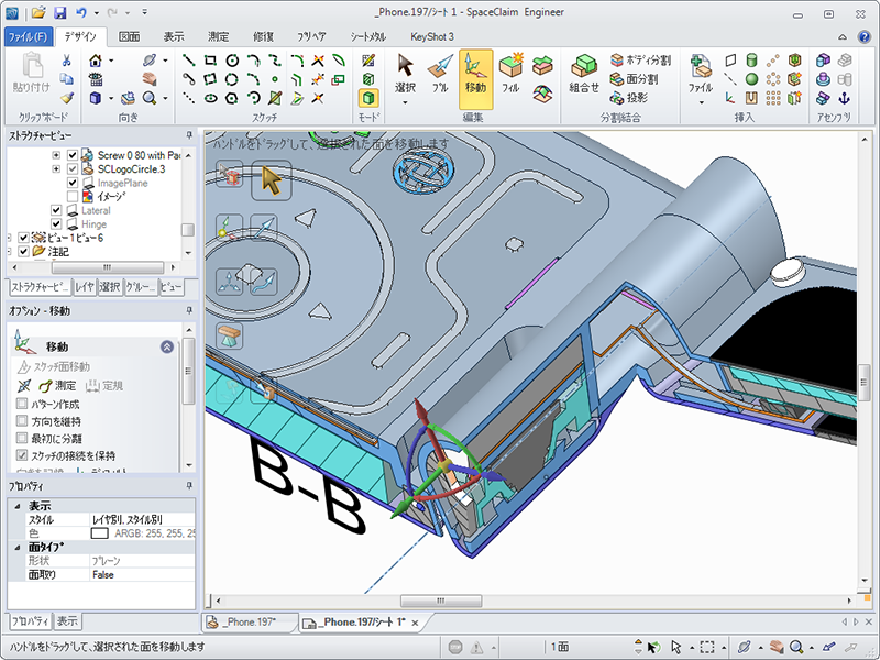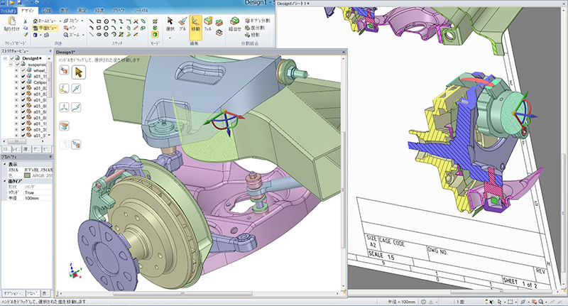 CAD機能:3Dダイレクトモデラー。部品、アセンブリ、図面間でシームレスな機能。