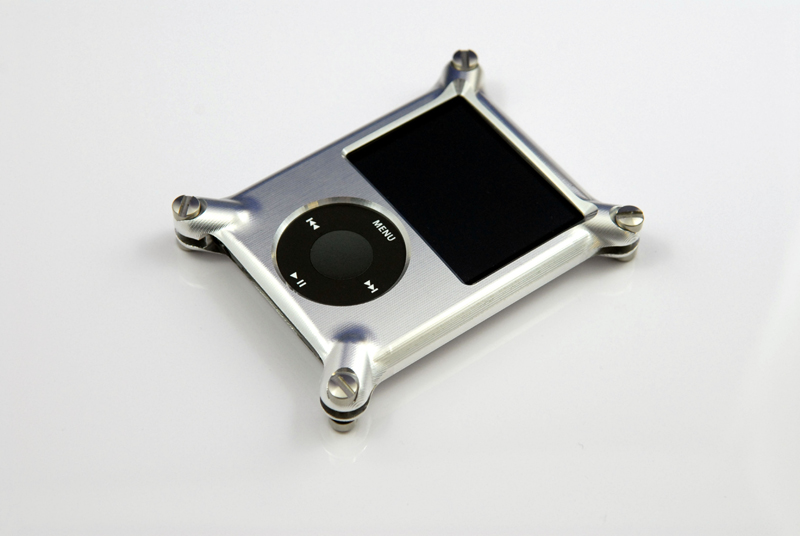 鉢呂:このケースは表と裏でiPod本体を挟み込むという構造を最初から考えていました。ですから単純に角をネジ止めしようという発想だったのですが、そこでネジのデザインに凝ろうと詰めていきました。また、この時は入曽精密の加工技術をよりアピールしようという試みもありました。このネジは5軸じゃないと加工できない形状をしているんです。