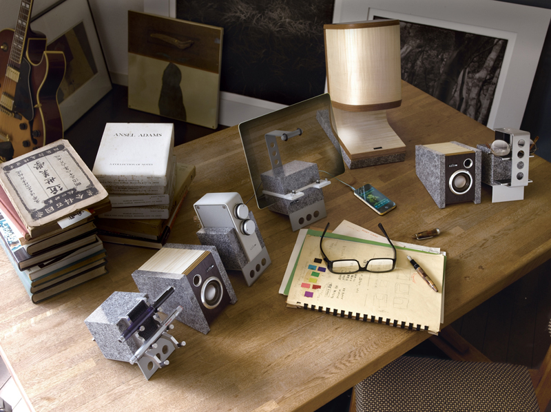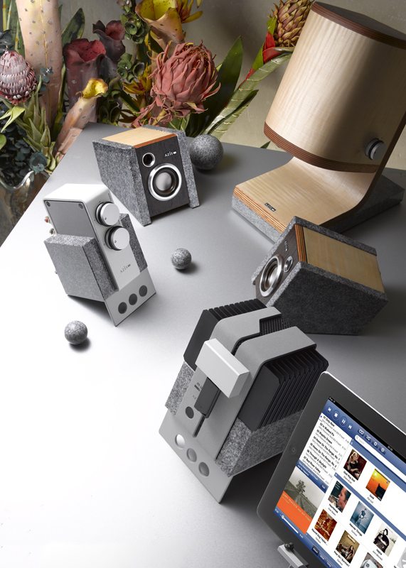 机上に並ぶAZiSのデスクトップオーディオ「AZISound」シリーズ。(クリックで拡大)
