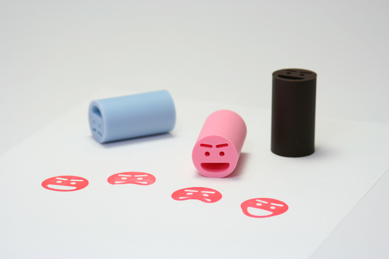 指先で『顔』の印面をつまみ変形させ、喜怒哀楽を表現できるシリコン製のスタンプ。スタンプをつまむ感触や『顔』が変形する様子を見ているだけで楽しめる(クリックで拡大) |