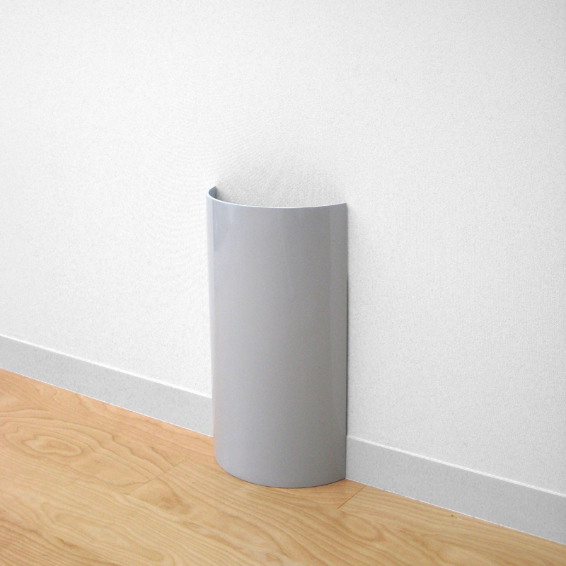 壁づけのゴミ箱です。円筒形を途中で切ったような形状は、壁に存在を溶け込ませたような佇まいを見せます。W260・D110・H460(クリックで拡大) |