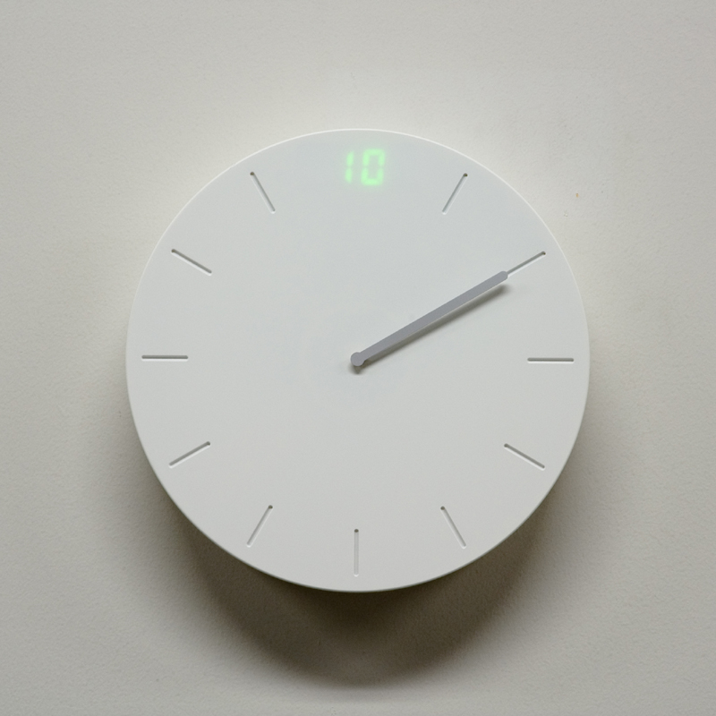 「時」と「分」の表示を、デジタルとアナログに分け、認識のしやすさと、静かな佇まいの両立を目指しました。φ200・D45(クリックで拡大) |