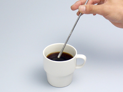 混ぜている間に飲み物の熱を伝え、指先でそれを感じさせてくれる。マドラーにほんのりと熱が伝わっていく。『飲み頃ですよ』と(クリックで拡大) |