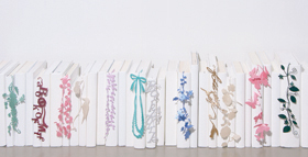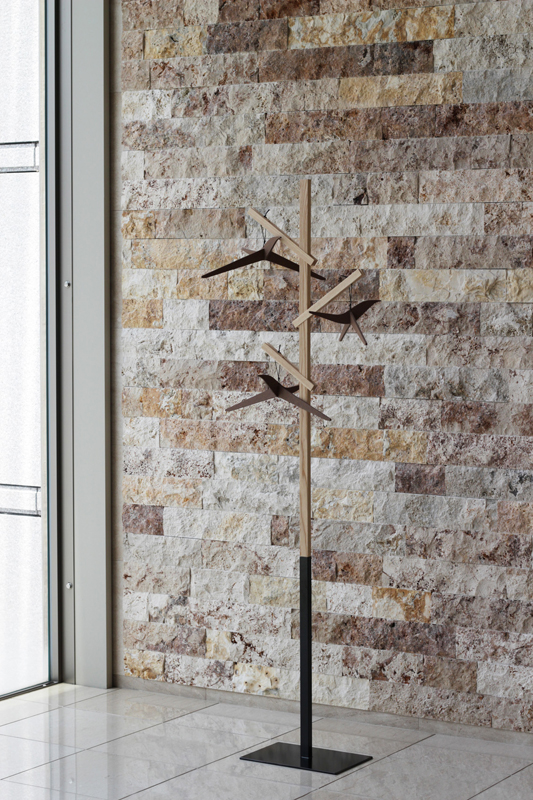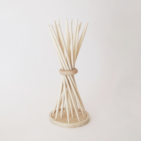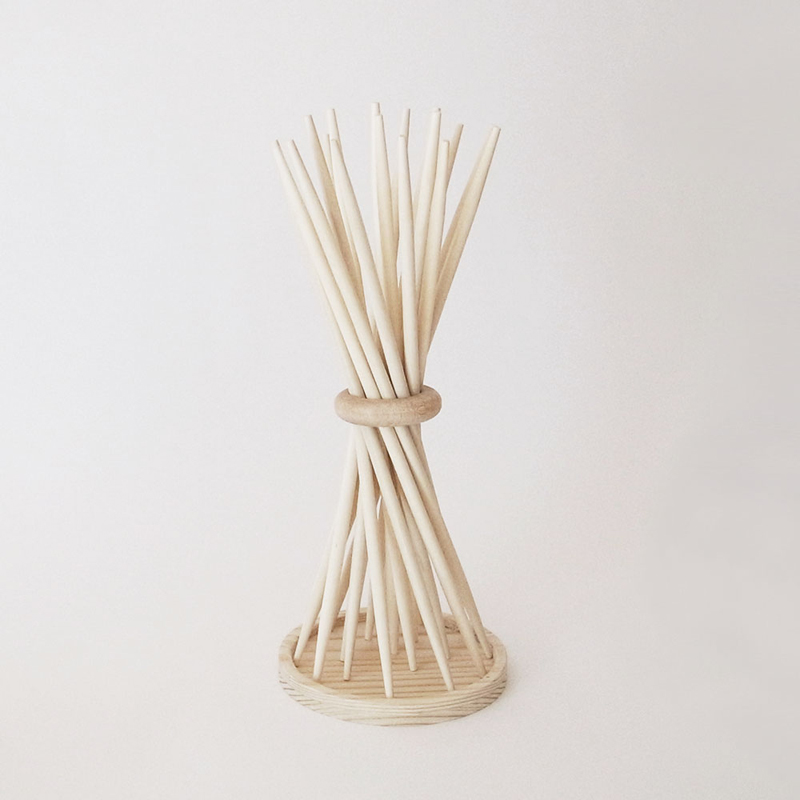 ○一言:個人製作の場合、通常は形や動きのイメージからそれに適した素材・構法を考えるのですが、今回はその逆で、使いたい素材をどう生かすかという手順で構想しました。素材を入手・検討する際に、サイズや製法の違いなどを事細かに教えてくださった筆軸の産地の方に感謝しています。2012年TENT LONDONで発表後、N.Y.拠点のアート系Webショップ「Vespoe」にて販売中。http://www.vespoe.com/miematsubara/shop