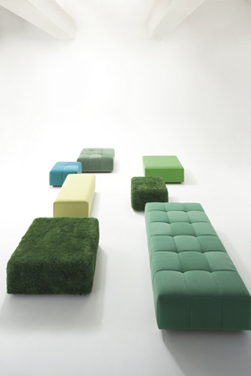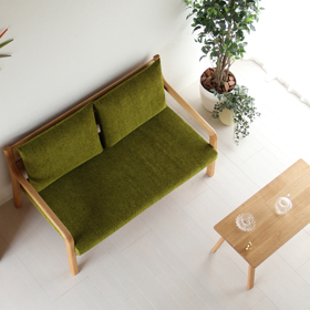 ○コンセプト:本物の緑のような心地よさを室内で楽しんでもらいたいと、視覚/触覚にこだわった芝生ファブリック。