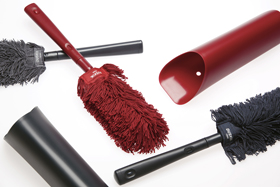 ○一言:10年以上の耐久性の必要なレンタル商品ということをを念頭に丈夫なつくりを考慮しつつも、パソコン周りや家具の隙間にも楽に入り込めるコンパクトさを同時に考えたこと。 使い捨ての掃除道具との違いを出せるようにユーザーの多様な要望もできるだけ盛り込んだ内容となっていること。