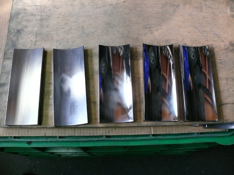 磨きの工程順に並べる。一番左が磨く前。一番右が仕上げられたペントレー(クリックで拡大)