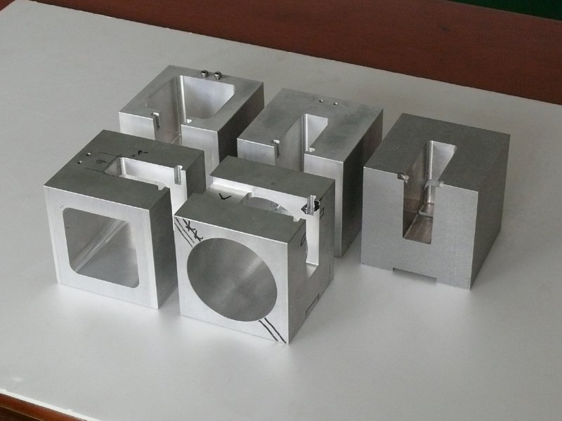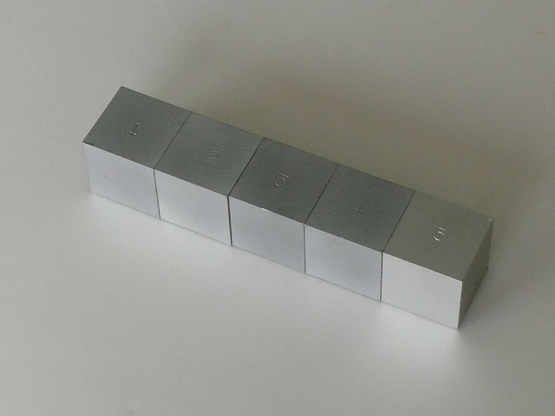 サイコロ型に作られたアルミの質感見本(クリックで拡大)