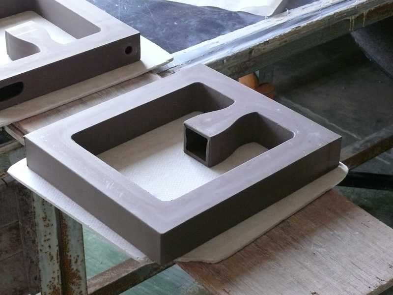 大橋:そうです。原型の次に試作用の見本型を作ります。見本型から5、6個成形をして焼き上がりの具合を見ていきます。焼き上がりがOKとなれば、その見本型にさらに石膏を被せて、ケース型(マスター型)を作ります。実際の製品は、そのマスター型から作った使用型という型で作ります。