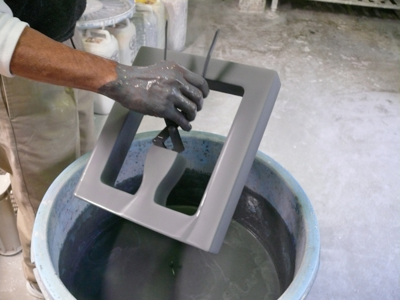 釉薬に浸ける前にバリなどを除き表面を仕上げる。その後乾燥させると色が白くなる