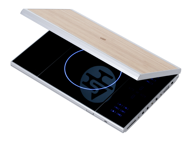次に素材から見ると、竹を使った2005年6月のポータブルDVDプレーヤー「VP-110」(生産終了)ですね。天板に竹の集成材を貼ったものです。ウェアラブルなモノの中では最初の製品なので、自分の中では想い入れはあります。