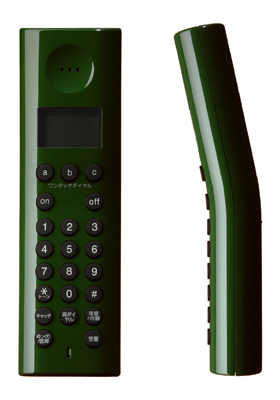 2ndコレクションの「コードレス電話機」。気持ちの良い丸みとちょっとユーモアのあるスタイル。少し「く」の字に折れたスタイルは、謙虚な感じも。人と話すための道具だからこそ、持った感じが優しいカタチに(クリックで拡大)