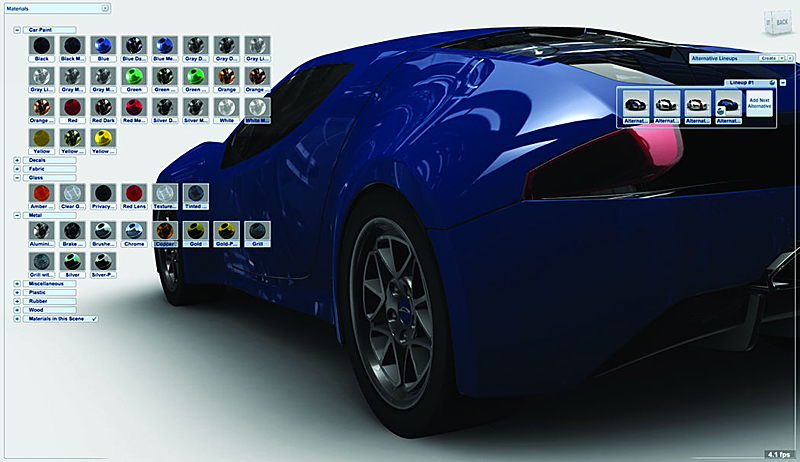 3.色、材質をリアルタイムに変更、同一モデルの異なったバージョン・バリエーションとしての比較が可能