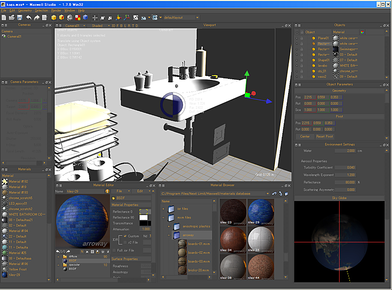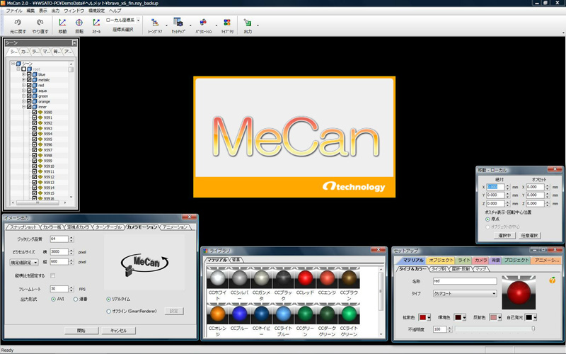 7.形状読込み、マテリアル設定、カメラ設定等のレンダリングシーン設定・変更を行うスタンドアローンアプリケーションを標準添付