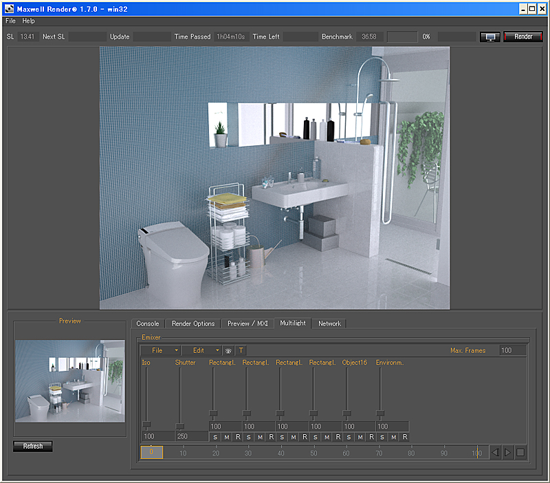3.レンダリングの終了した画像に対し、フィルム、シャッター、光源特性を、リアルタイムに変更