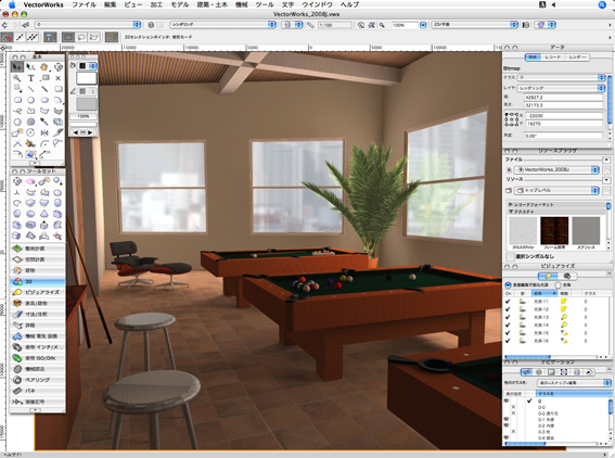 本バージョンよりVectorWorksをシリーズ名称に変更し、製品ラインナップを一新。スタンドアロン版は、ベーシックな「VectorWorks Fundamentals」をはじめ、上位版となる「VectorWorks Designer」、レンダリング機能を拡張した各「with RenderWorks」シリーズ、また、ネットワーク環境内でのライセンス管理をスムーズにするフローティングライセンス方式を採用した「VectorWorks ネットワーク版」シリーズを用意。