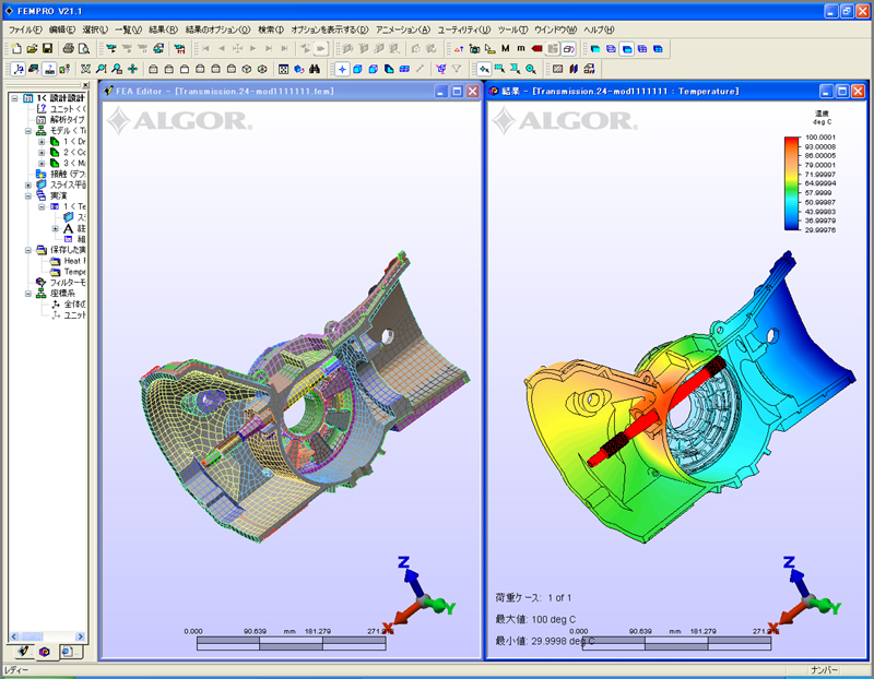 ALGORは応力、熱、衝撃、流体、静電などの各種解析項目に対応した、統合CAEソフトウェアです。主要3次元CADに対応したインターフェイスで、設計と検証のループが容易に実現でき、デザイン精度の向上と工数削減に効果を発揮します。